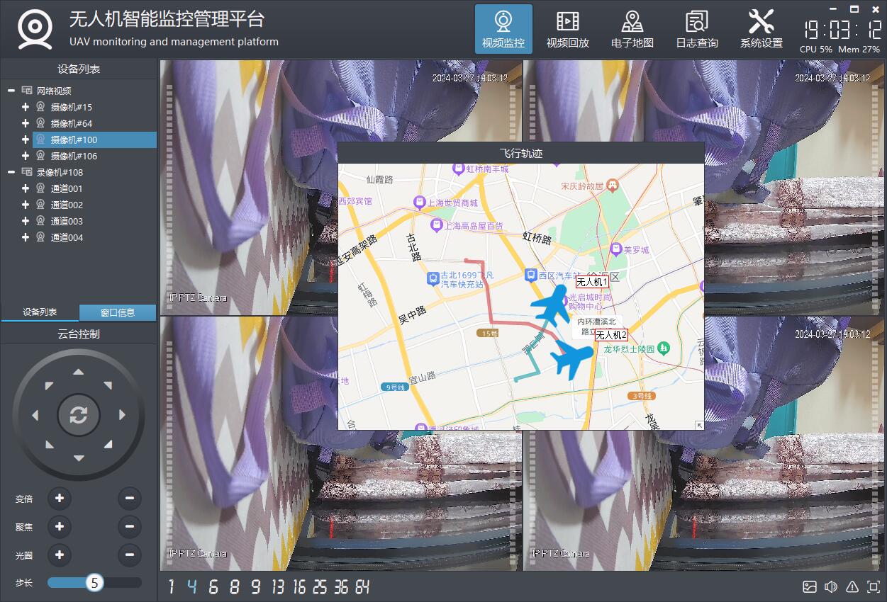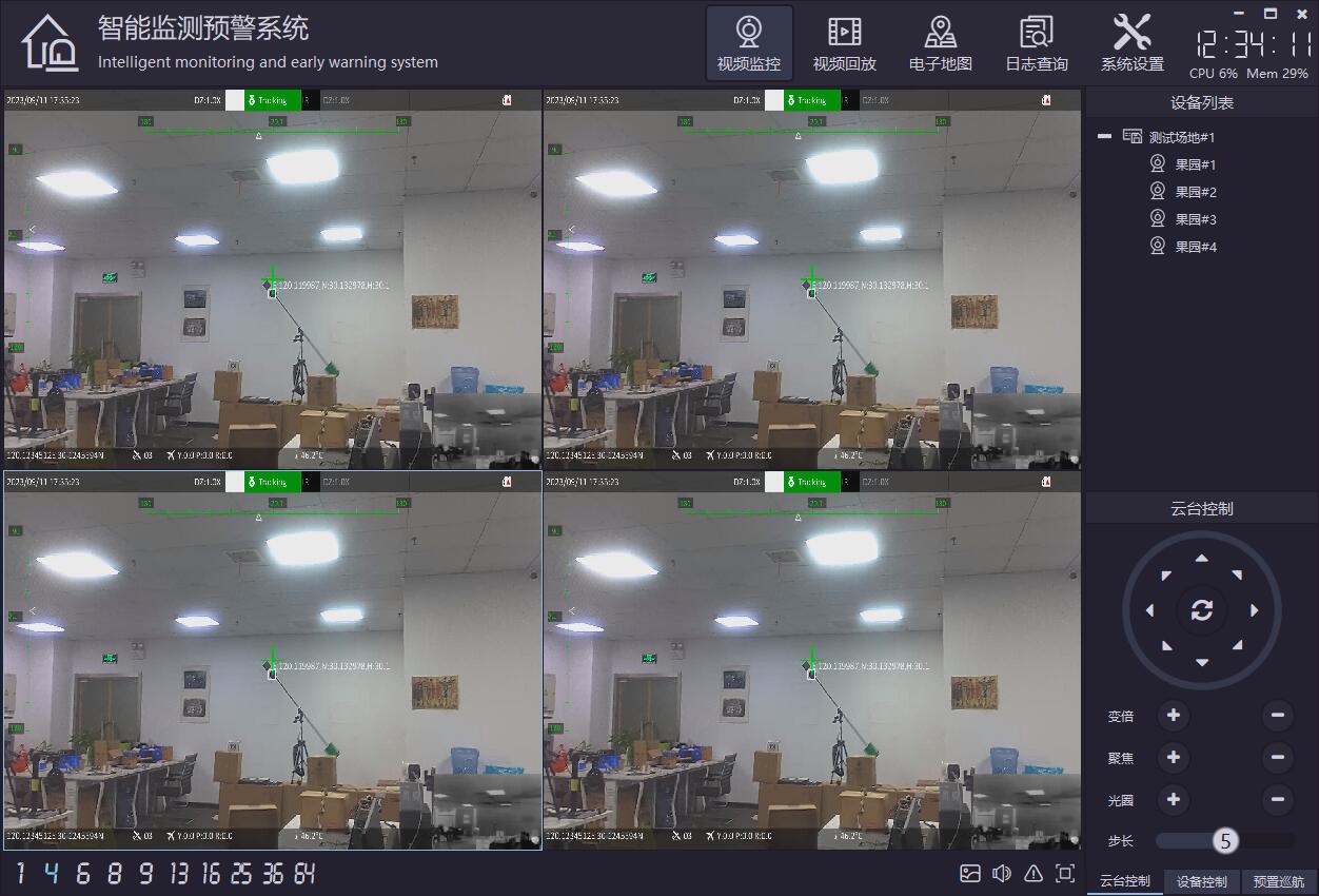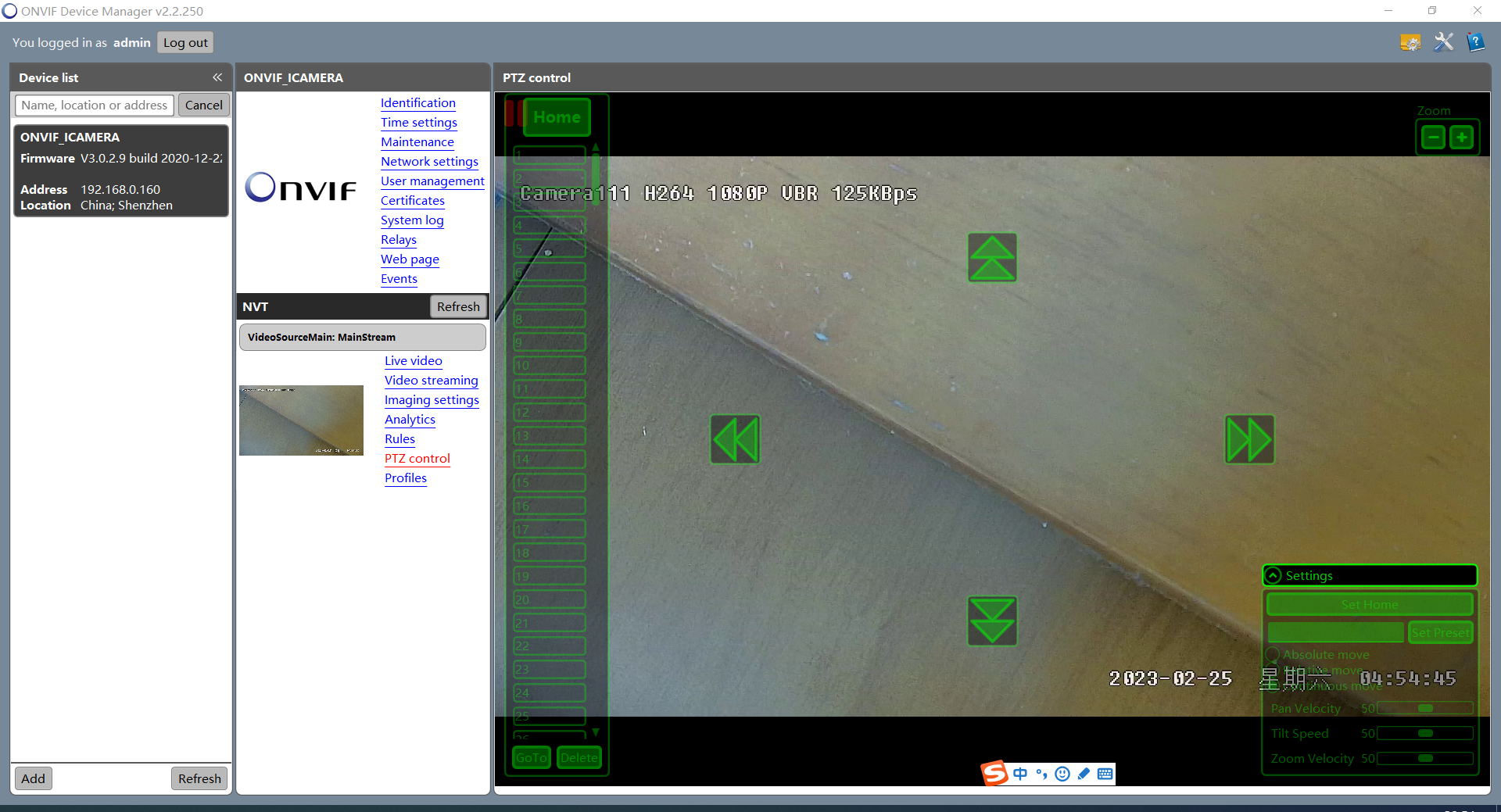 支持onvif云台控制,可上下左右移动云台摄像机,包括复位和焦距调整等。