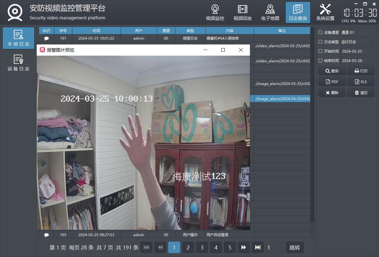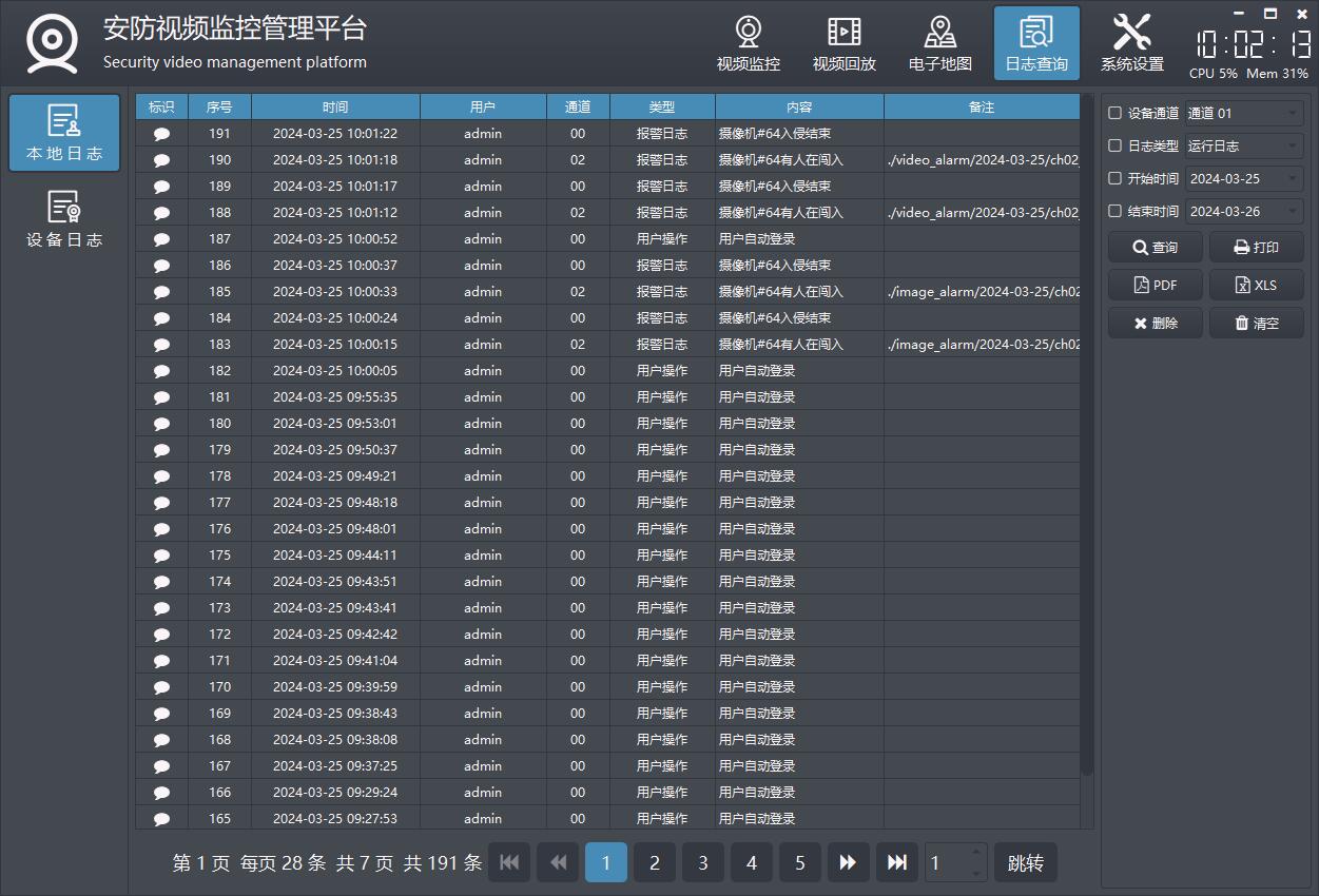 日志查询模块,包括本地日志、设备日志等。