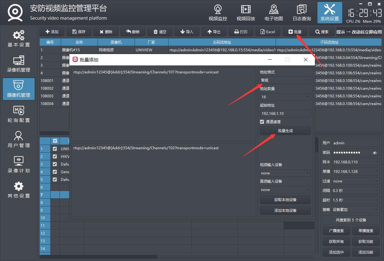 系统采用onvif协议+rtsp视频流机制,并不限定支持哪家的摄像机,只要符合这两种协议的都支持,市面上99%的网络摄像机都支持这两种基础协议,包括但不限于海康、大华、宇视、天地伟业、华为等各种安防厂家的摄像机。