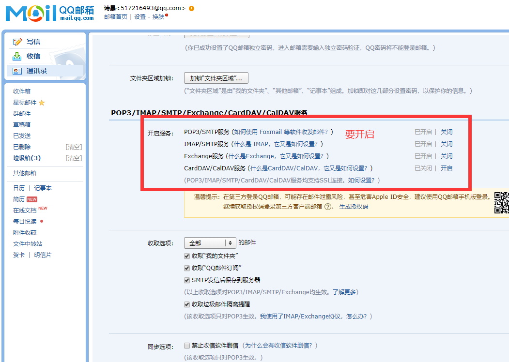 本系统支持邮件转发,前提是对应的邮箱账号需要开通 POP3/SMTP 等服务,按照图示开启即可,一般开启后会设置独立的管理密码,记得在系统设置那边的邮件转发,填写密码的时候要填的是独立管理密码,而不是邮箱号的密码,这个机制和任何第三方邮箱管理软件都一样。
