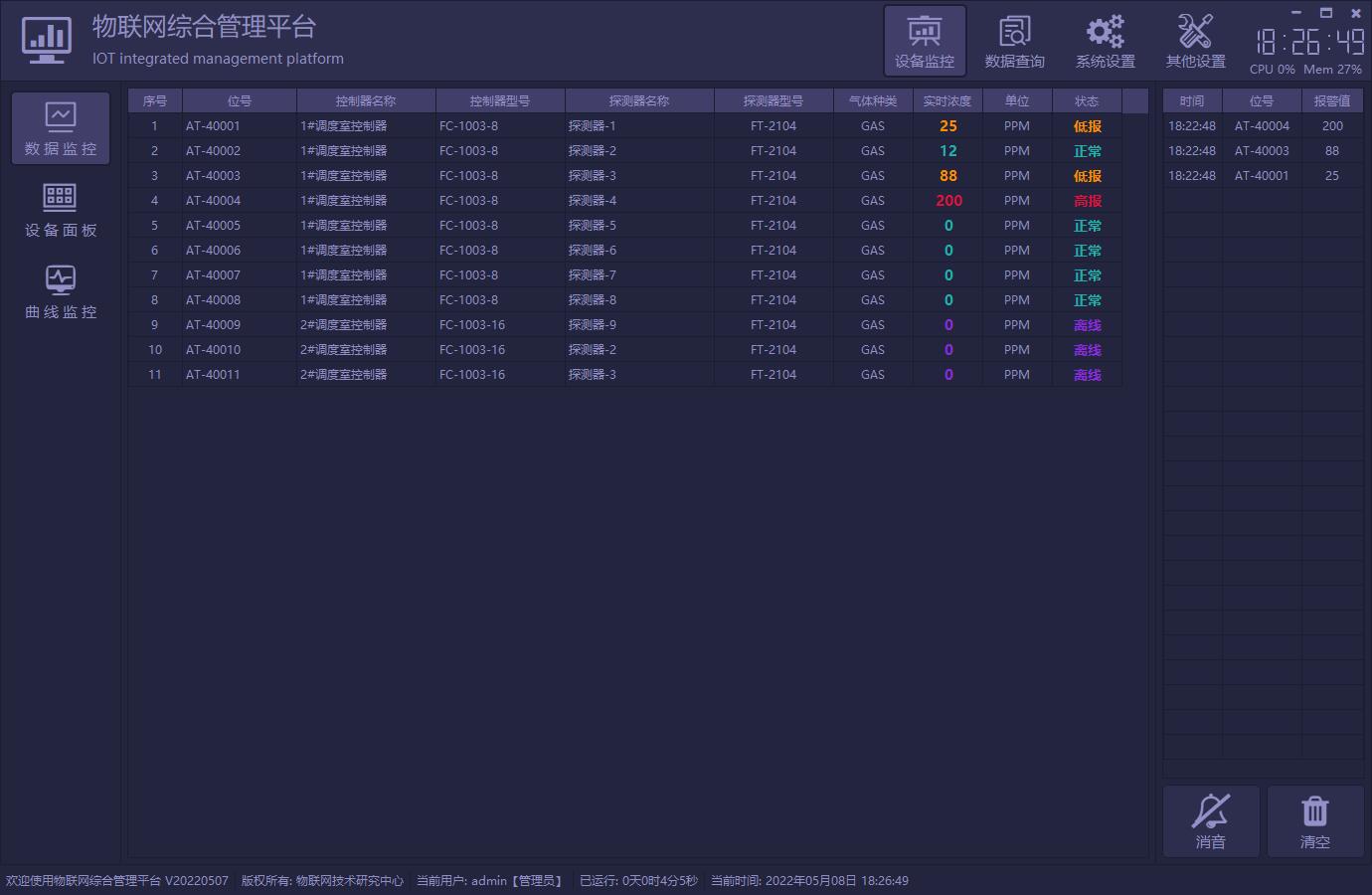 控制器和探测器相关表格信息和报警数据,字样全部可以自定义,比如控制器和探测器可以定义为设备和参数,最明确的叫法可以是主设备和子设备,主设备负责把子设备的数据一起打包上报。