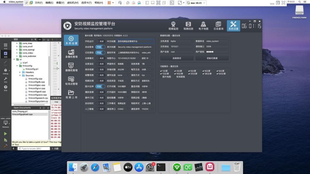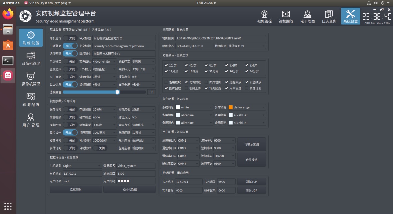 | frmconfigsystem | 系统设置,包括基本设置、视频参数、数据库设置、地图配置、功能激活、颜色配置、串口配置、网络配置等。 |
