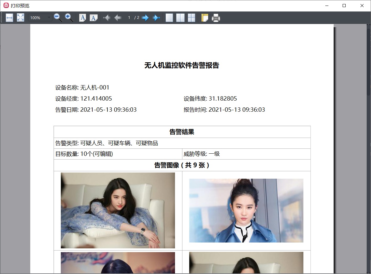 单击打印按钮可以将表格中的内容打印出来,打印前会弹出打印预览界面,可以自行做边距的调整等,可以查看等待打印的内容,翻页切换。