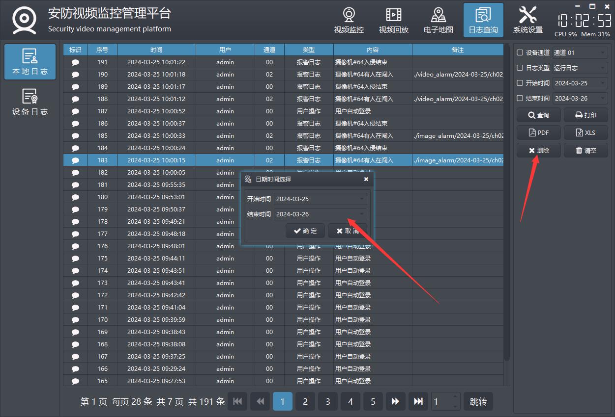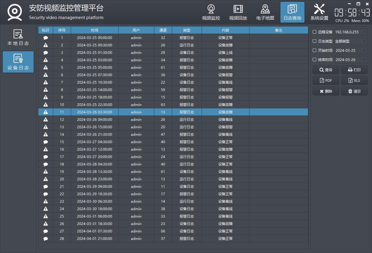 日志查询模块,包括本地日志、设备日志等。