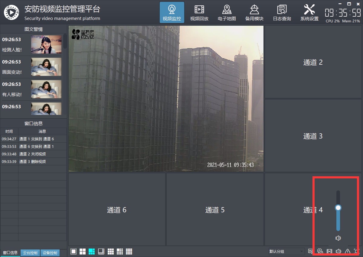 如果需要控制云台移动,先要选择对应的通道,边缘会高亮,进行云台控制的前提是该摄像机要是支持云台的摄像机,很多人以为啥摄像机都可以移动,这是错误的,如果摄像机不支持云台,这个功能就别玩了,玩不起,经常遇到一些人说怎么云台不能用了,一检查尼玛原来摄像机根本没有云台。