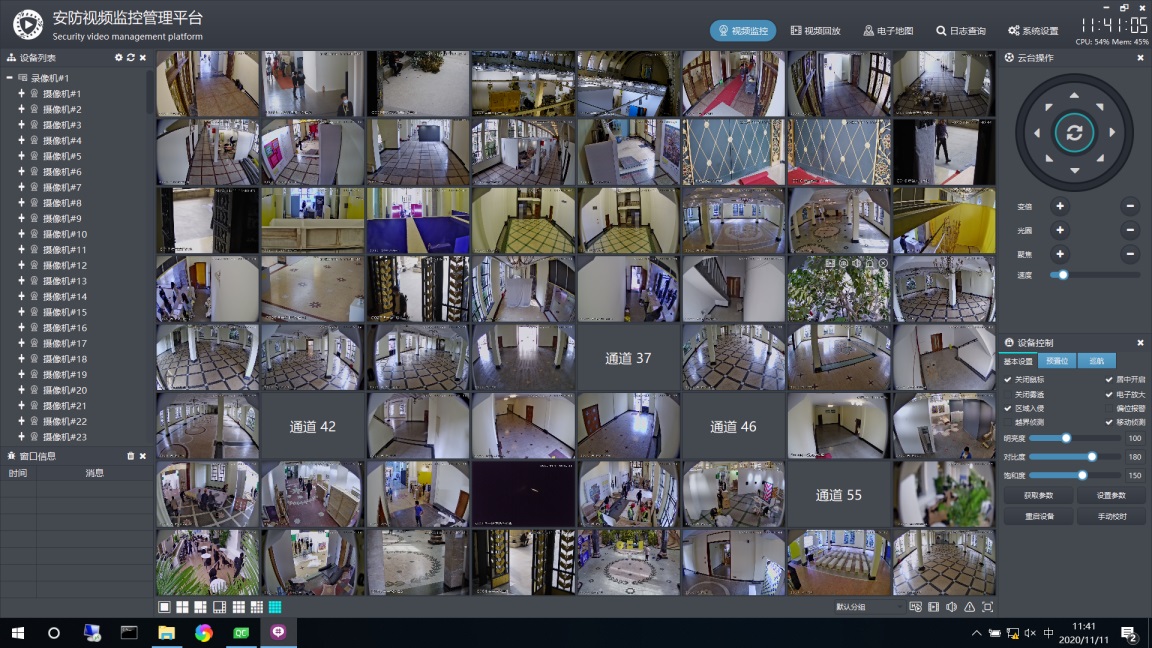 设备控制部分,目前可以获取和设置图片参数、手动校时、重启设备等,上面那一堆复选框对应功能需要用厂家sdk去实现,后期可能会增加一些onvif能够处理的功能。和云台控制操作一样,操作前也是需要选中某个通道,然后才是对选中的通道进行设备控制,比如图片参数中的明亮度、对比度、饱和度。