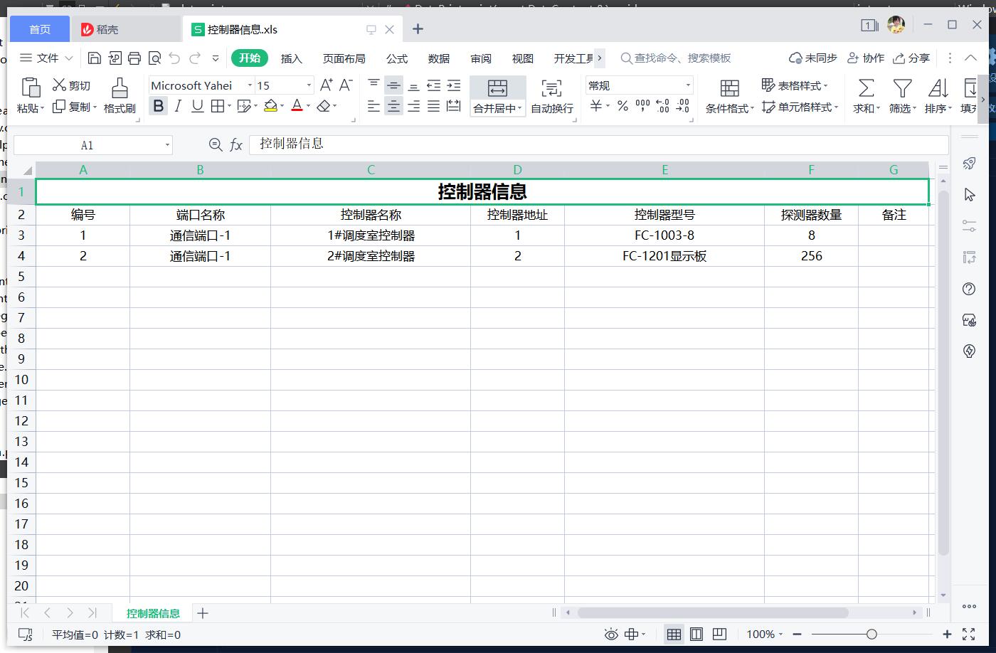 控制器型号+探测器型号+气体种类+气体符号改成表格存储,新增探测器数量字段。