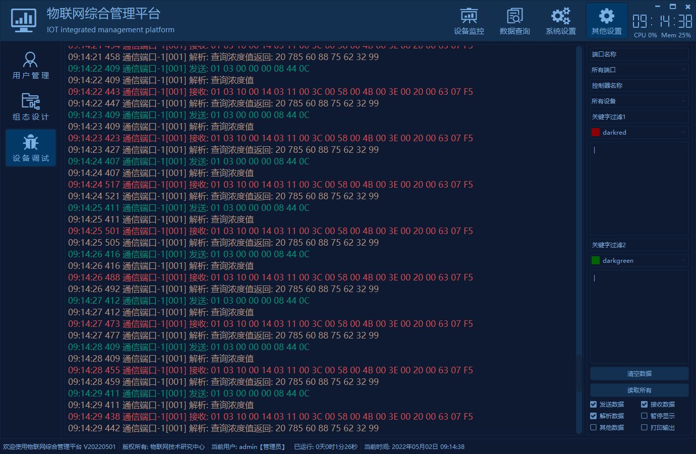 发现数据不对或者有误,可以直接在设备调试界面查看具体的通信数据。