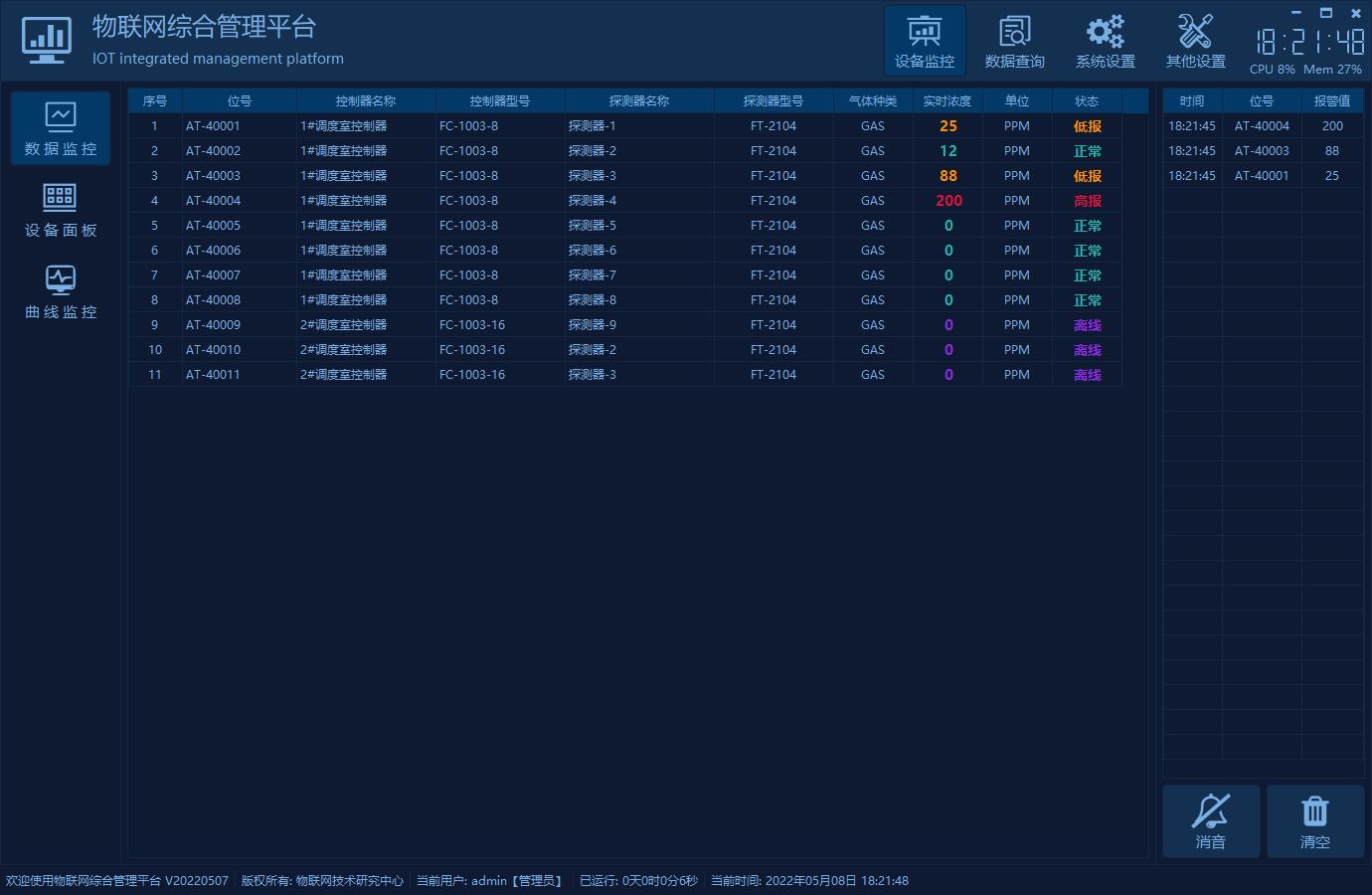 探测器报警的类型支持多种,有些设备是高于某个值高报,低于某个值低报,而有些设备是在最小值最大值范围内是高报,低于最小值低报,高于最大值正常。这样可以分情况处理,涵盖各种报警类型。
