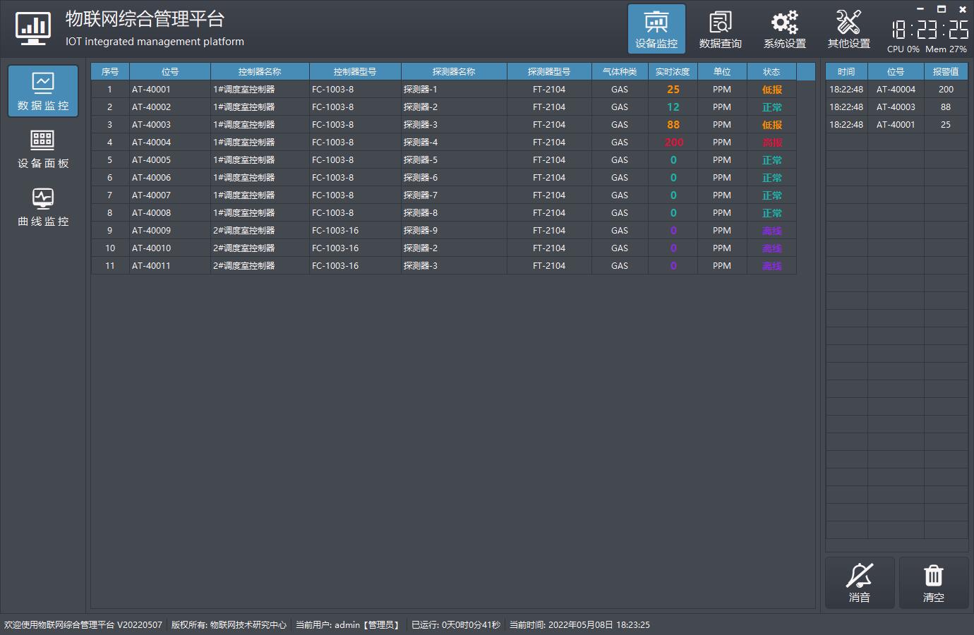 控制器和探测器相关表格信息和报警数据,字样全部可以自定义,比如控制器和探测器可以定义为设备和参数,最明确的叫法可以是主设备和子设备,主设备负责把子设备的数据一起打包上报。