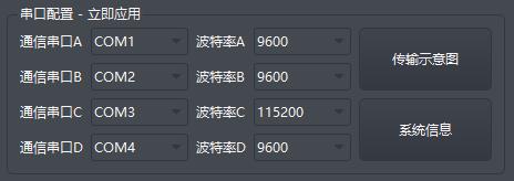 系统中可能用到了多个串口通信,可以在这里选择对应的串口号和波特率。