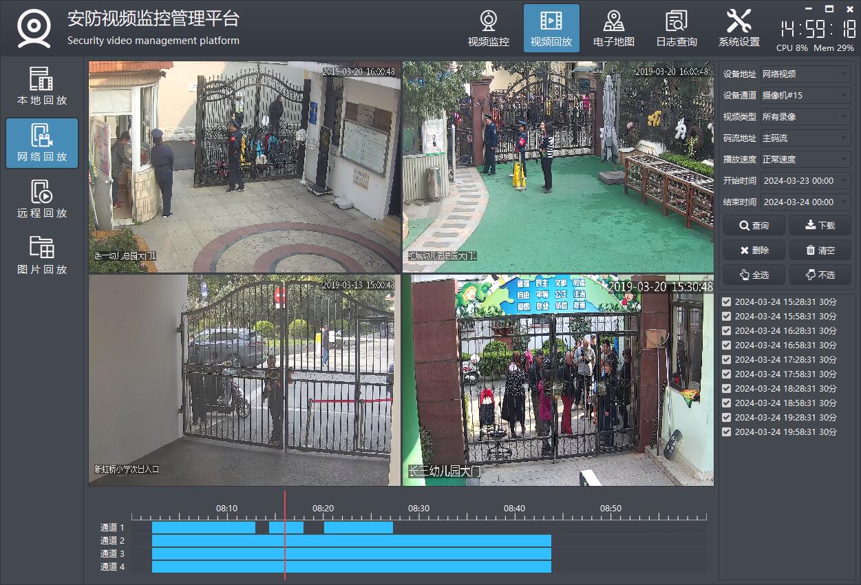 视频回放模块,包括本地回放、远程回放、设备播放、图片回放、视频上传等。