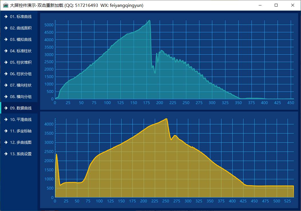 11. 可设置多条曲线不同颜色,没有设置颜色的情况下内置多套精美颜色随机应用。