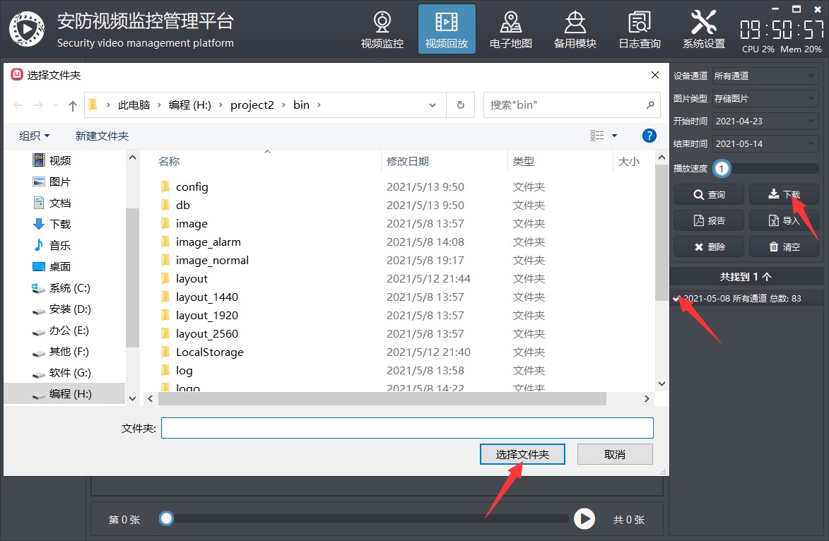 视频下载是将查询出来的视频文件,按照勾选了的文件保存到选择的目录中。