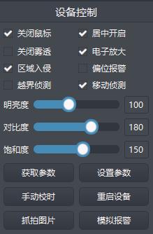 设备控制部分,目前可以获取和设置图片参数、手动校时、重启设备等,上面那一堆复选框对应功能需要用厂家sdk去实现,后期可能会增加一些onvif能够处理的功能。和云台控制操作一样,操作前也是需要选中某个通道,然后才是对选中的通道进行设备控制,比如图片参数中的明亮度、对比度、饱和度。