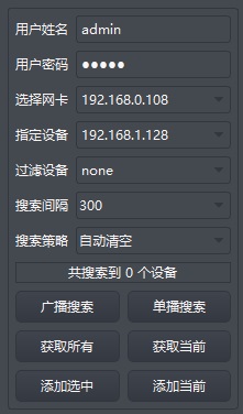 | frmconfigipcsearch | onvif设备搜索,独立出来的窗体,可以搜索局域网内的所有onvif摄像机信息,搜索完以后获取摄像机的视频流地址等,最后可以单个添加或者批量选中添加到摄像机信息表格中。 |