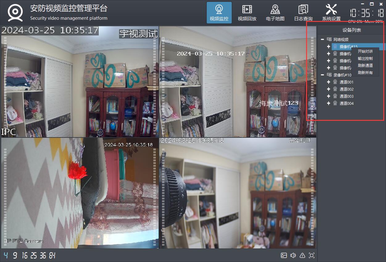 删除视频支持鼠标右键删除、悬浮条关闭删除、拖曳到视频监控面板外删除等多种方式。