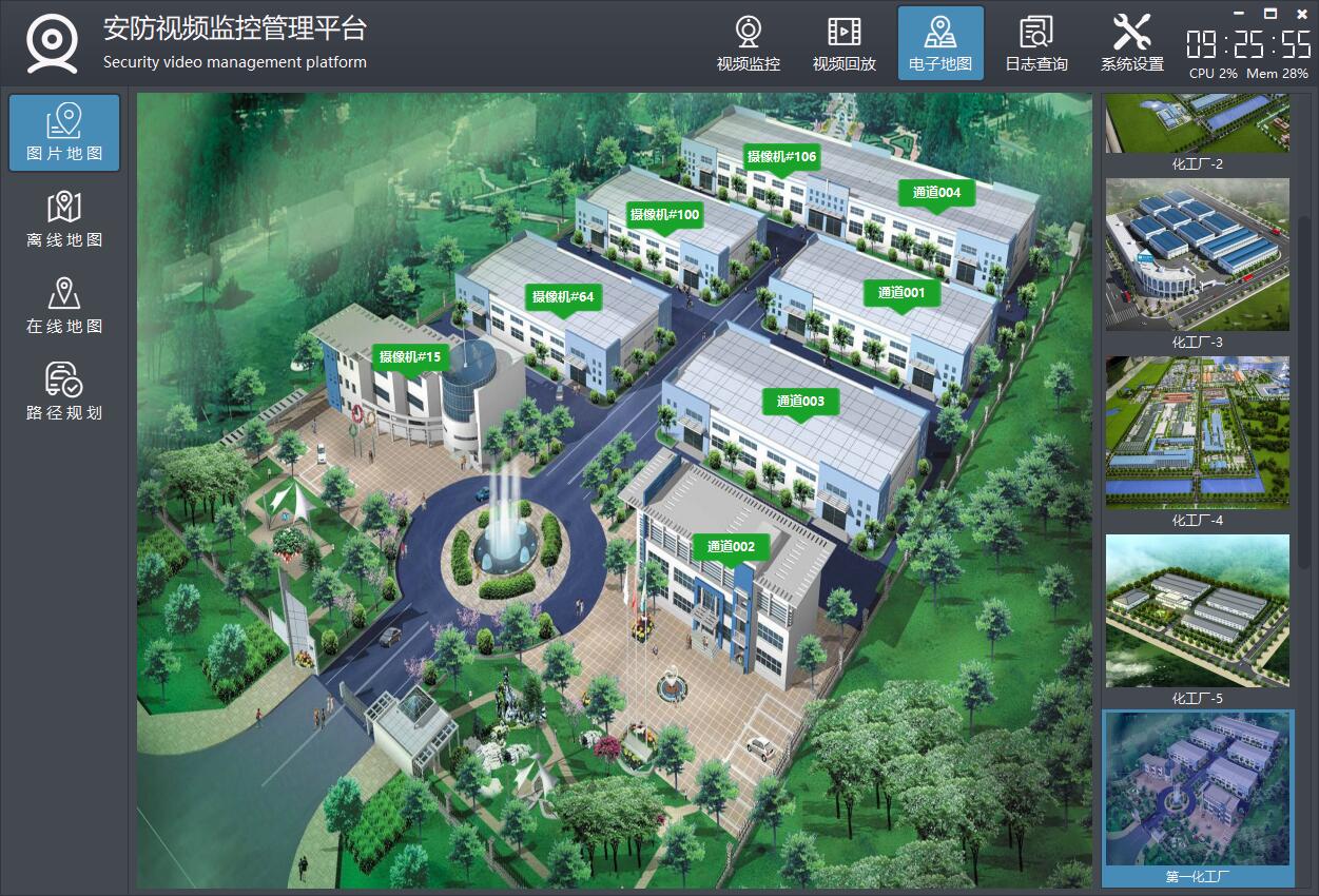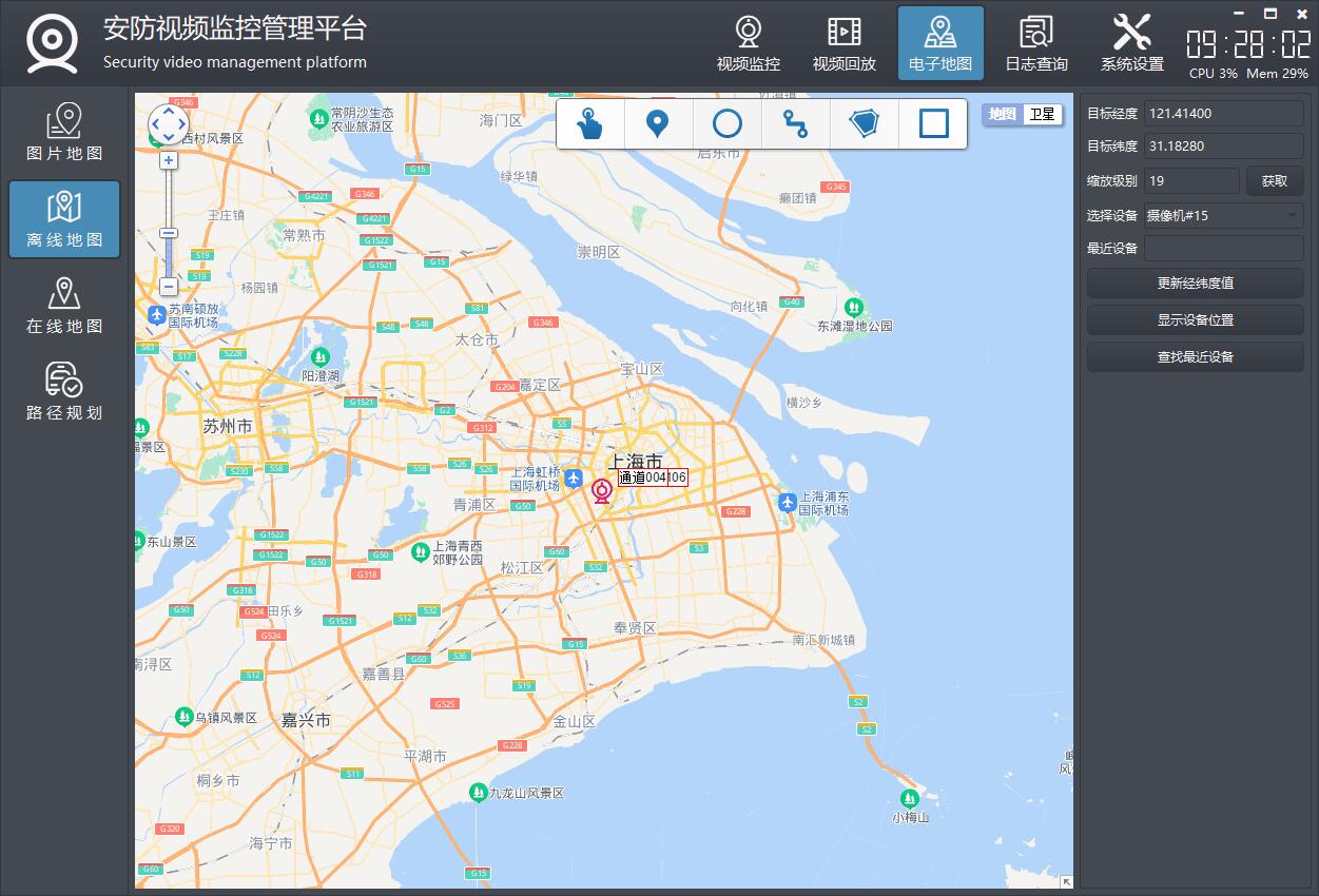 双击设备弹出实时预览视频,支持图片地图、在线地图、离线地图等。