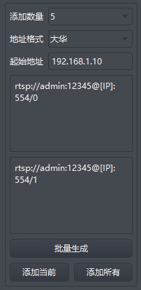 轮询表信息可以通过已添加的摄像机信息表选中添加,也可以自定义规则批量生成视频流地址添加,这种应用场景非常多,比如现场是某一种品牌的摄像机,视频流格式固定,只需要设置好主码流子码流的视频流格式,便可批量生成。