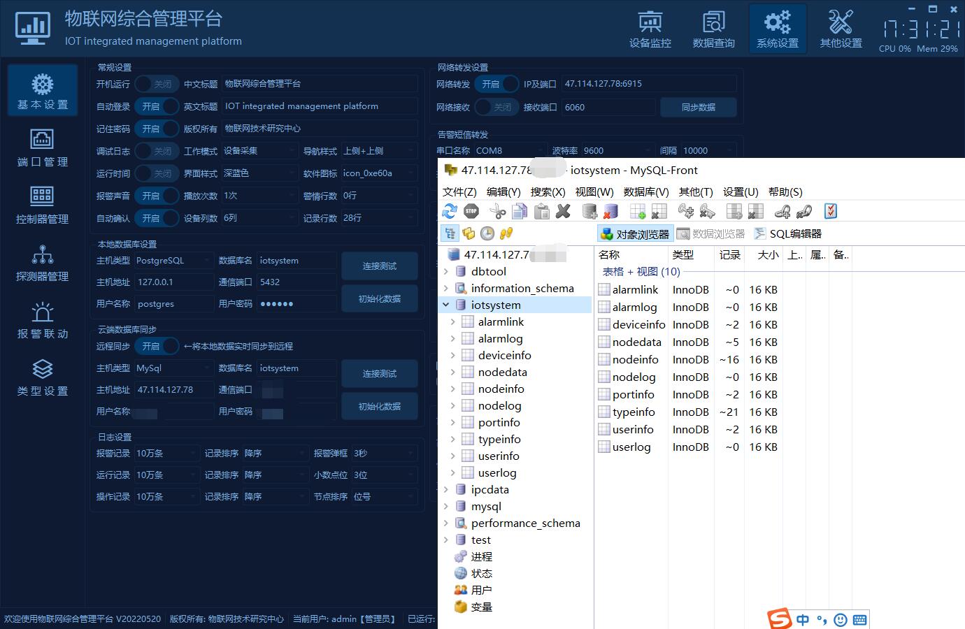 3. 编译完成后,先双击打开iottool.exe,这个是设备模拟工具,再打开iotsystem.exe,这个是主程序,主程序建议添加两个通信端口,一个串口端口和一个网络端口,设备模拟工具会自动打开串口和网络进行数据的模拟。