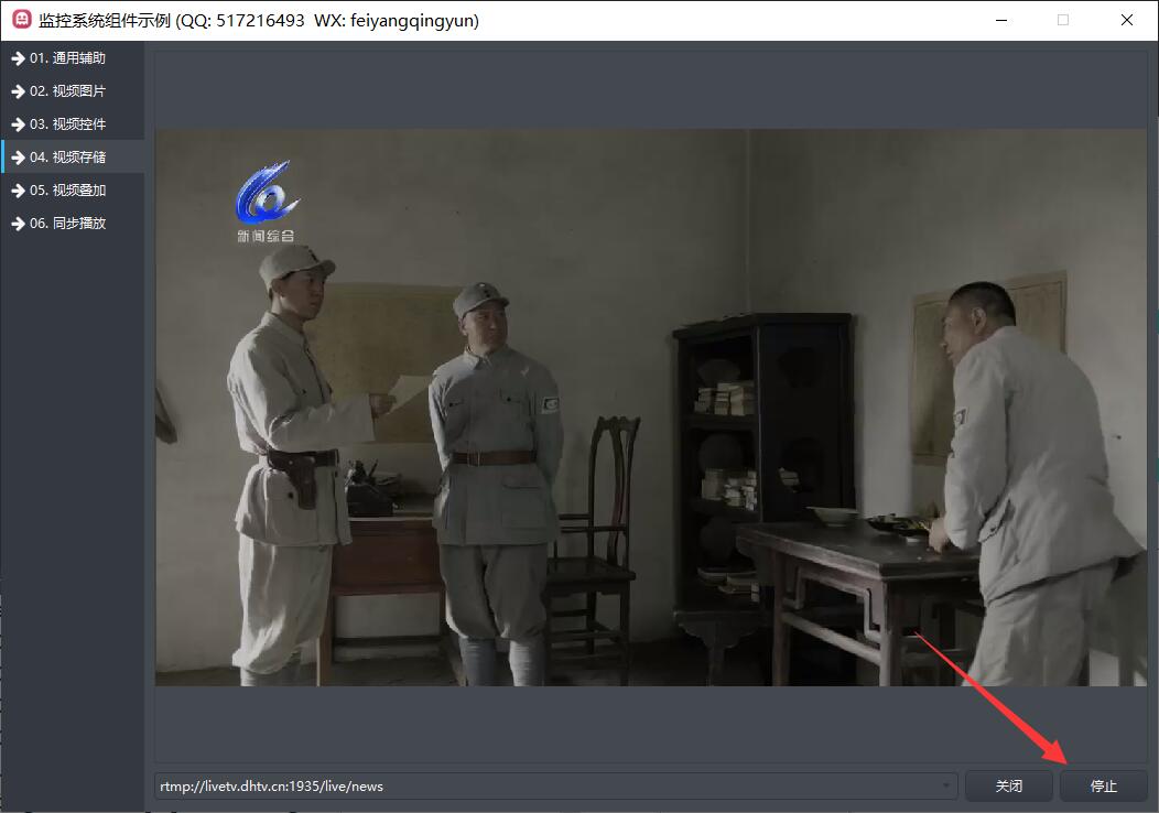 演示视频控件如何存储视频文件到本地,单击开始按钮开始存储视频,单击关闭则关闭存储。