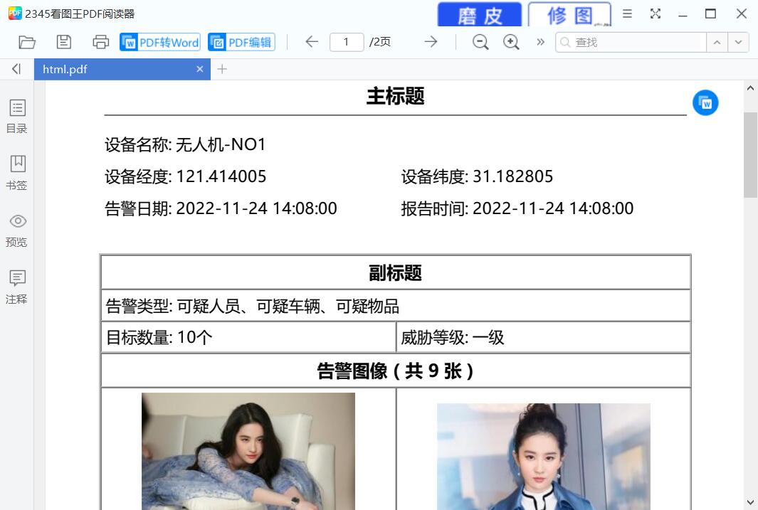 图文混排,可以自定义信息,封装好的类,传入图片队列,图片自适应等比例缩放显示,超过自动分页。