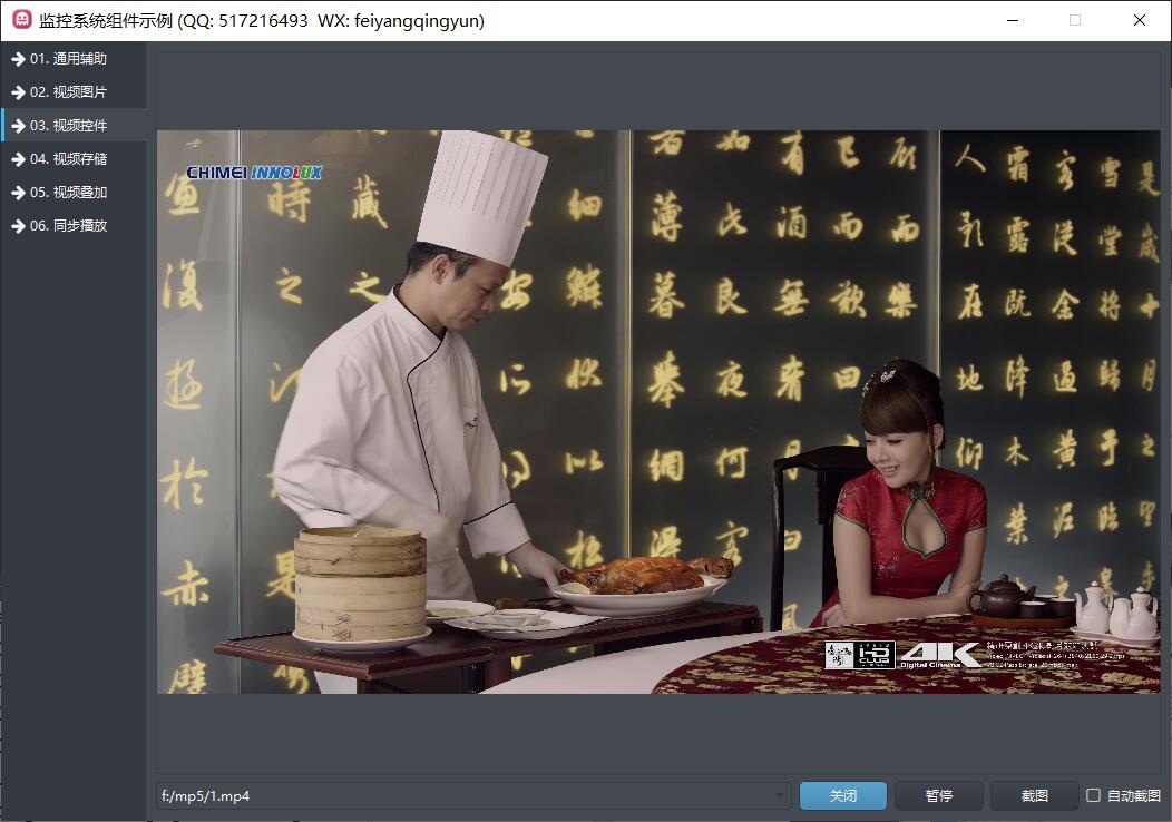 演示通用视频控件如何使用,包括打开、关闭、暂停、继续、截图、自动抓拍等功能。