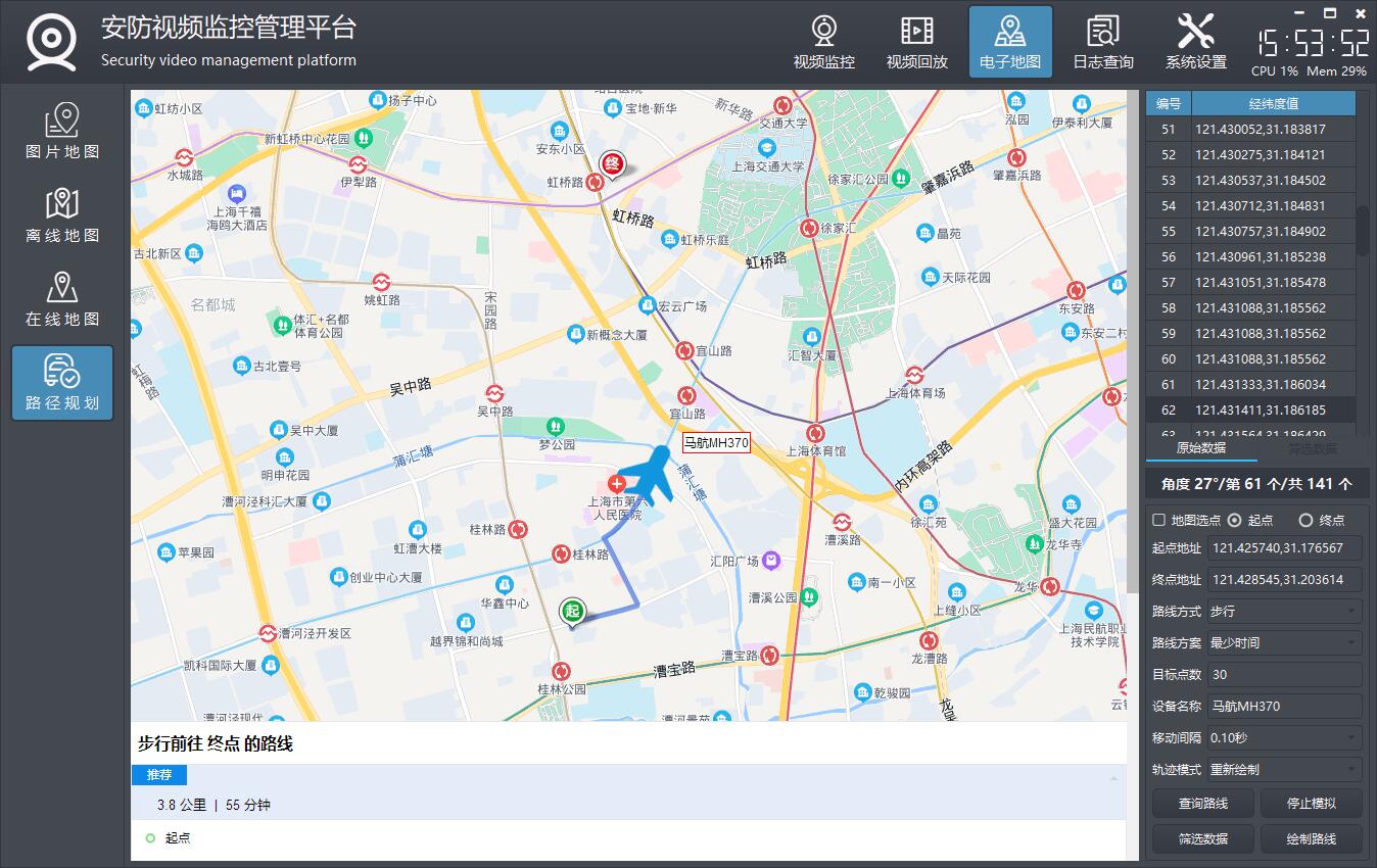 功能和在线地图完全一致,唯一区别就是地图是离线的,不需要联网。离线的地图需要自己准备好,可以网上通过瓦片地图下载器来下载需要的地方的离线地图,一般离线地图比较大,他是一张张图片,所以建议离线地图只下载自己需要的即可,比如某个县的地图,而不是所有的,所有的起码有几十GB。