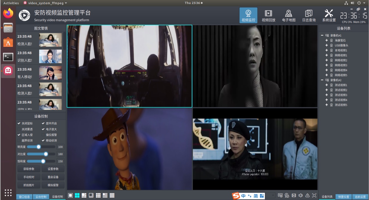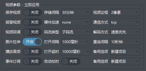 设备控制部分,目前可以获取和设置图片参数、手动校时、重启设备等,上面那一堆复选框对应功能需要用厂家sdk去实现,后期可能会增加一些onvif能够处理的功能。和云台控制操作一样,操作前也是需要选中某个通道,然后才是对选中的通道进行设备控制,比如图片参数中的明亮度、对比度、饱和度。